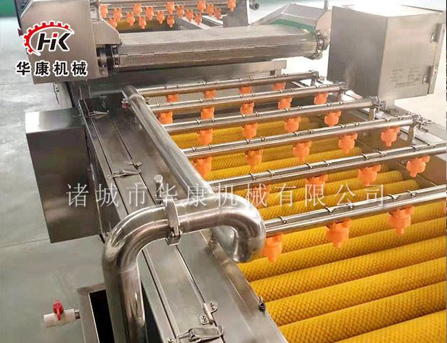 红薯等被清洗物料通过毛辊去皮清洗机的毛刷转动,物料表面与毛刷磨擦,从而达到物料要清洗、去泥、抛光的效果,清洗、去泥、抛光要选择毛刷的粗细。